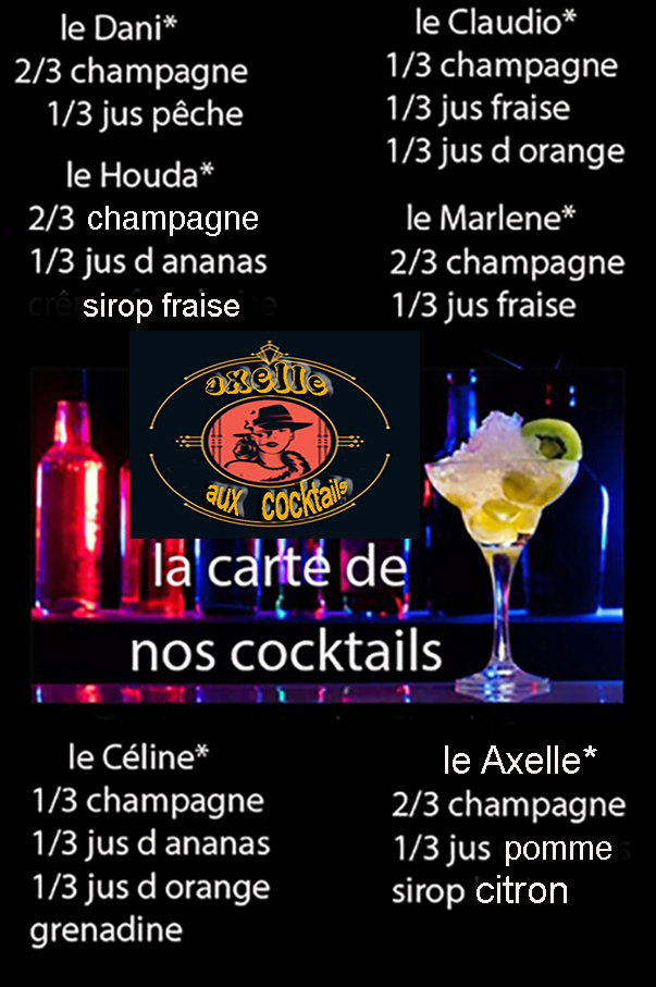carte des cocktails préparé par Axelle