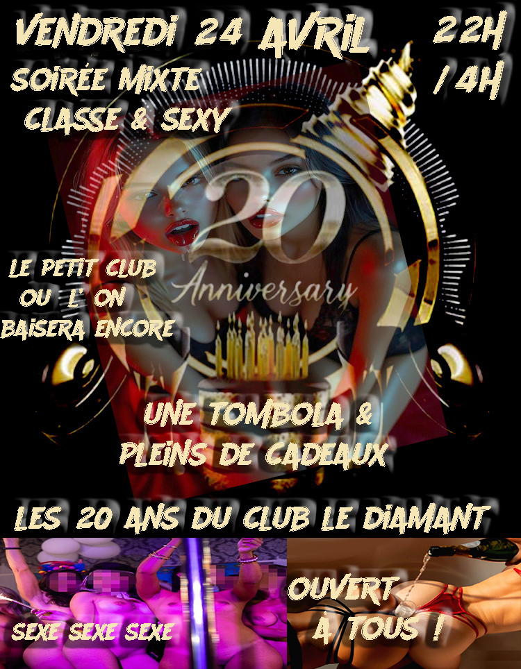 bonjour , vendredi 24 & samedi 25 avril de 22h à 4h ouvert à tous ! week-end anniversaire du club ...