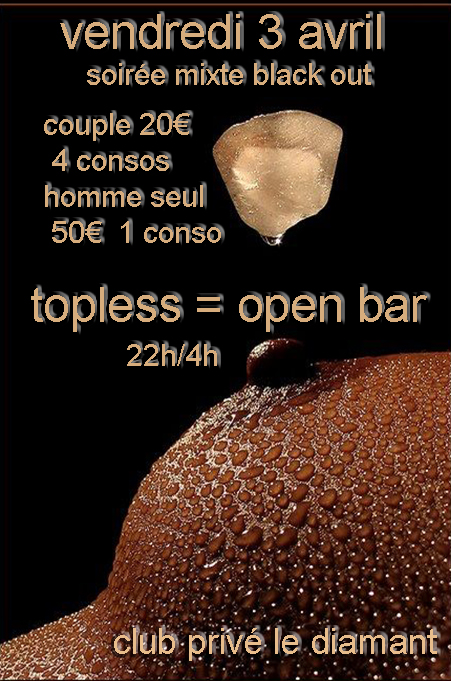 vendredi 3 soirée mixte topless bienvenues ( = open bar )