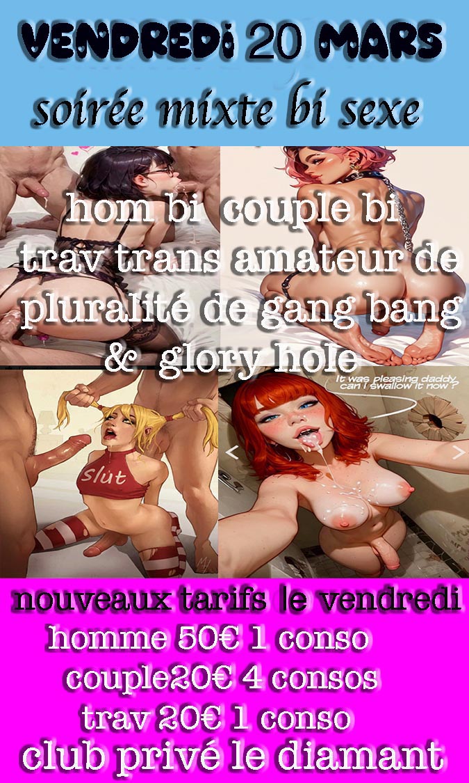 - Samedi 7 mars : soirée mixte bi sexe transgenre